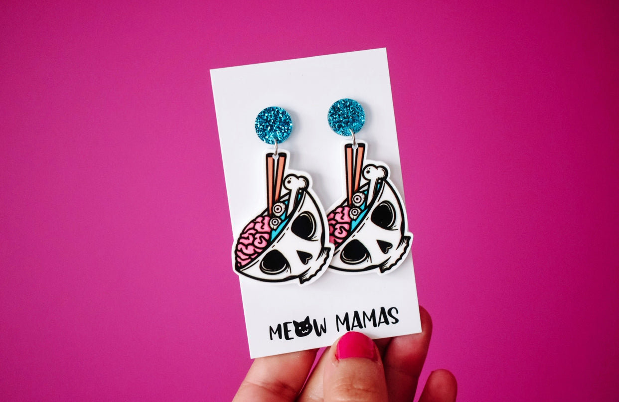 Noodle brain dangle earrings