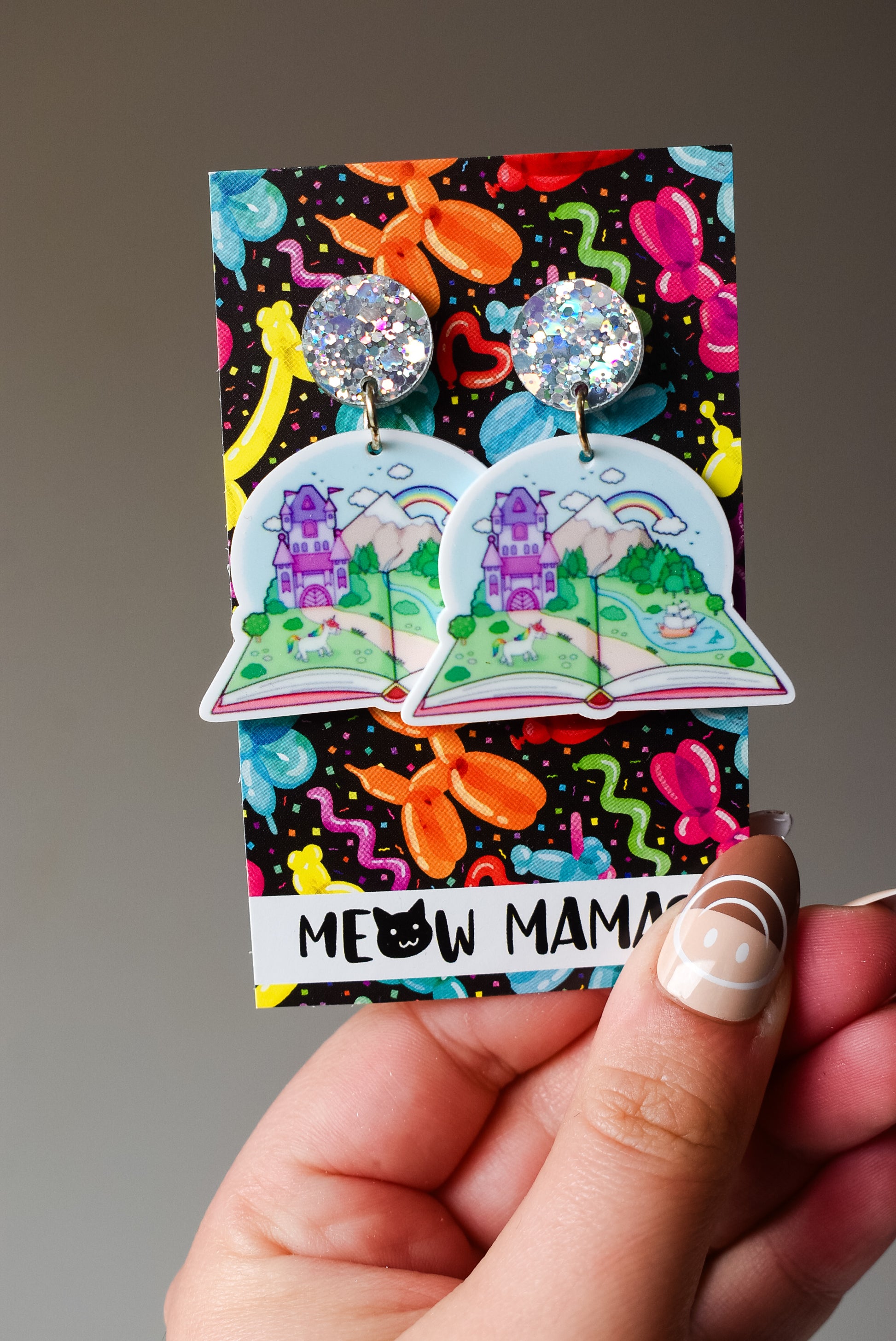 Story book dangle earrings